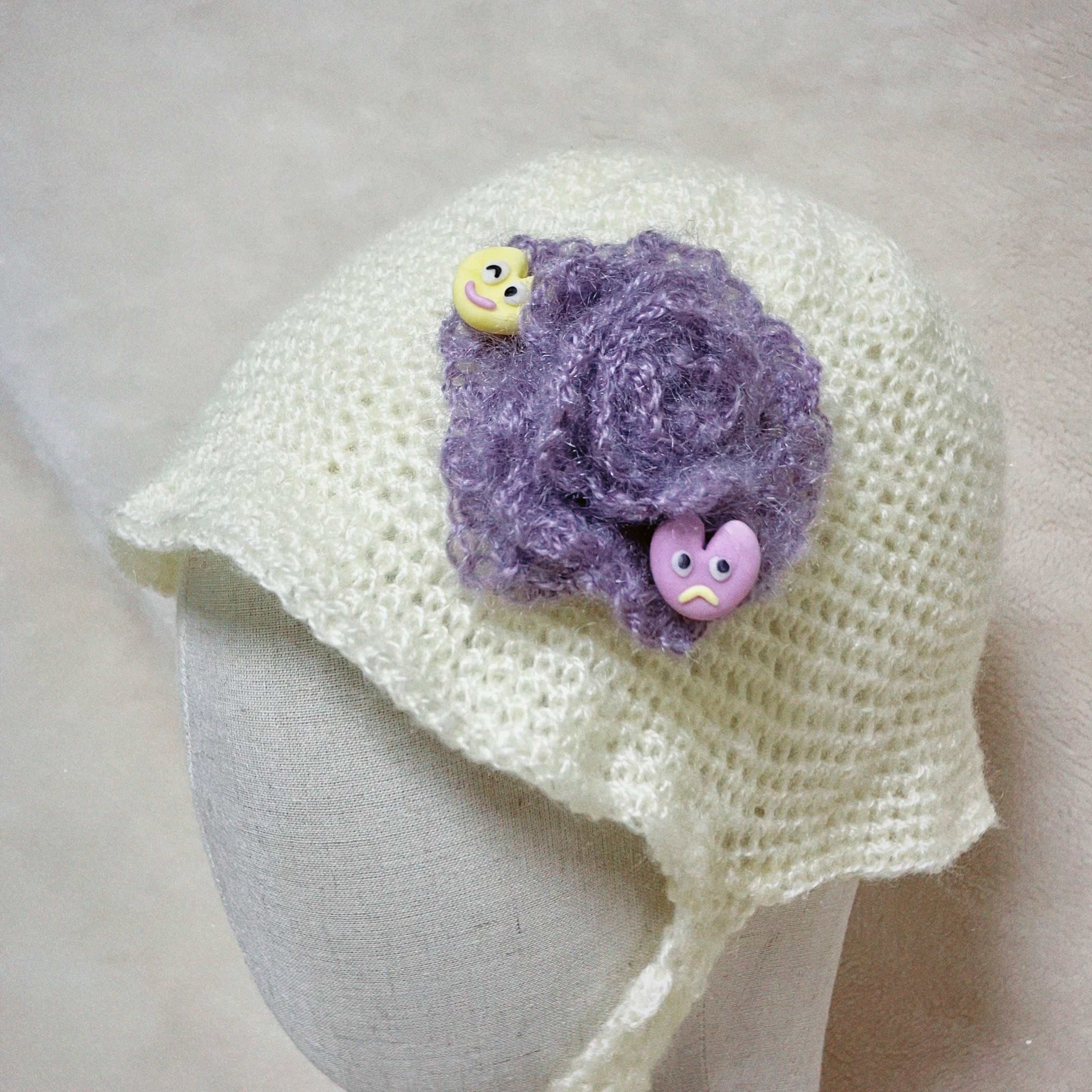 ニット帽。オリジナル樹脂パーツがニット帽に付いています。