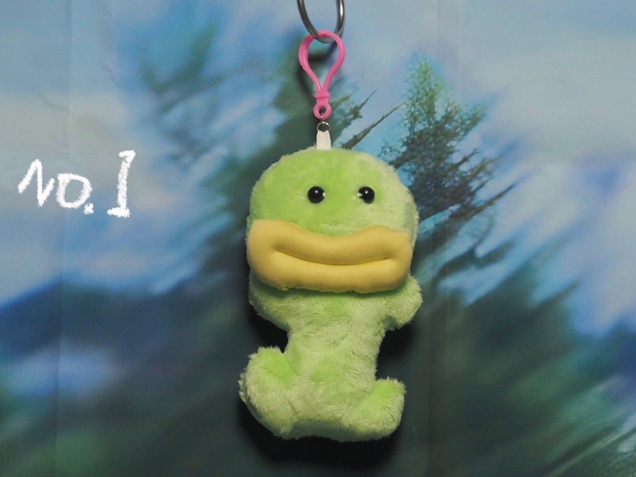 くちがバナナの謎の物体のキーチェーンです。グリーンversion。1〜4からお好きなくちバナナまんをお選び下さい。