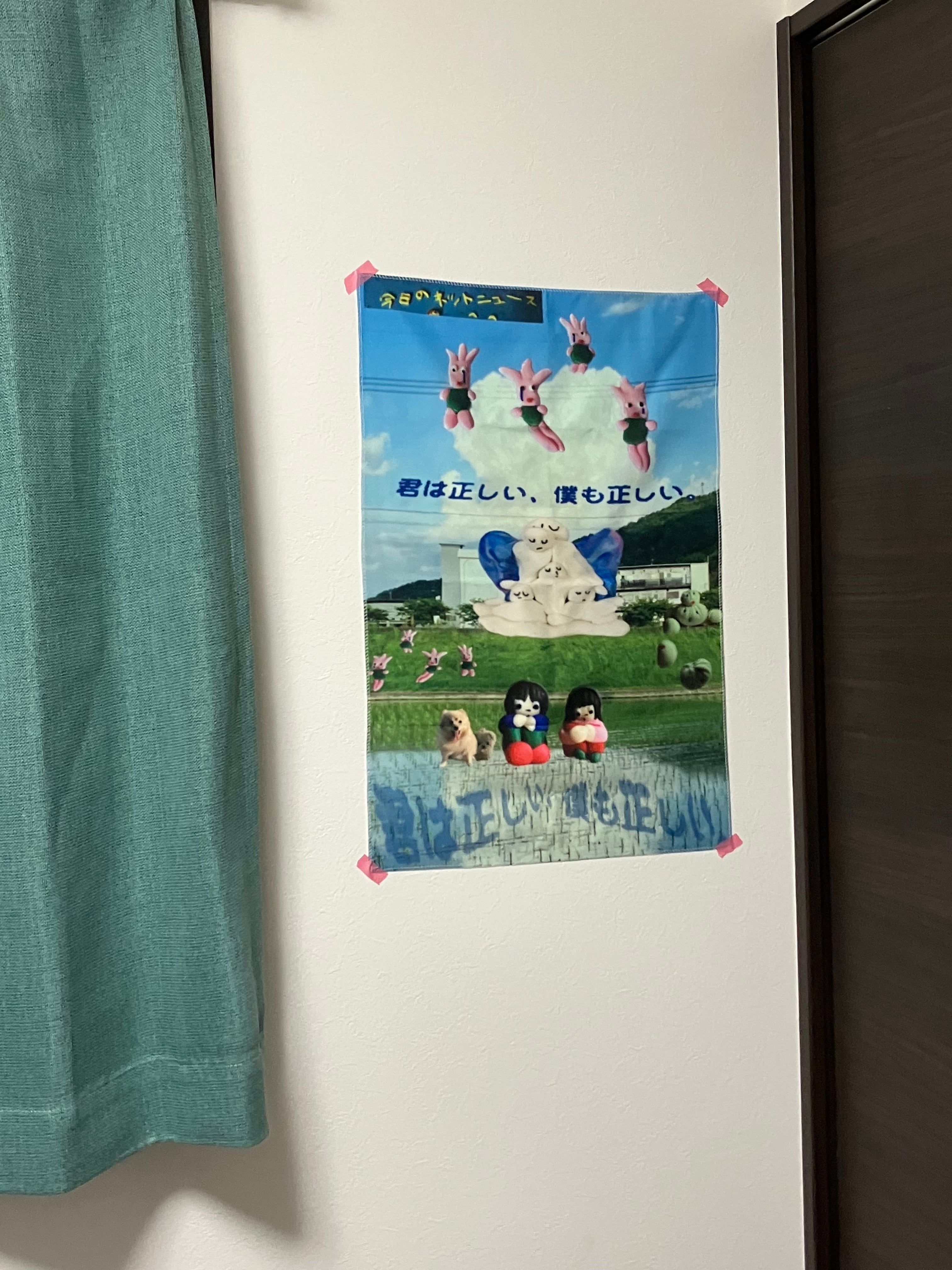 2024に作ったコラージュを布ポスターにしました。部屋のどこかに貼って自分が正しいことを再確認しましょう。