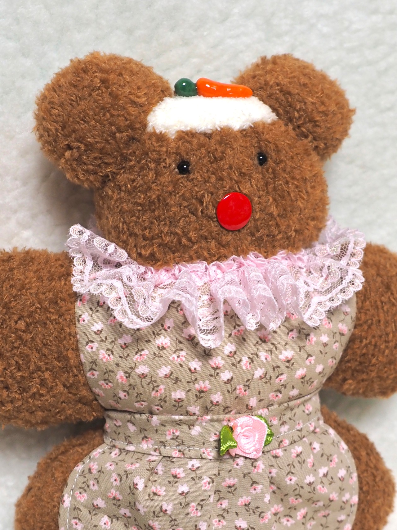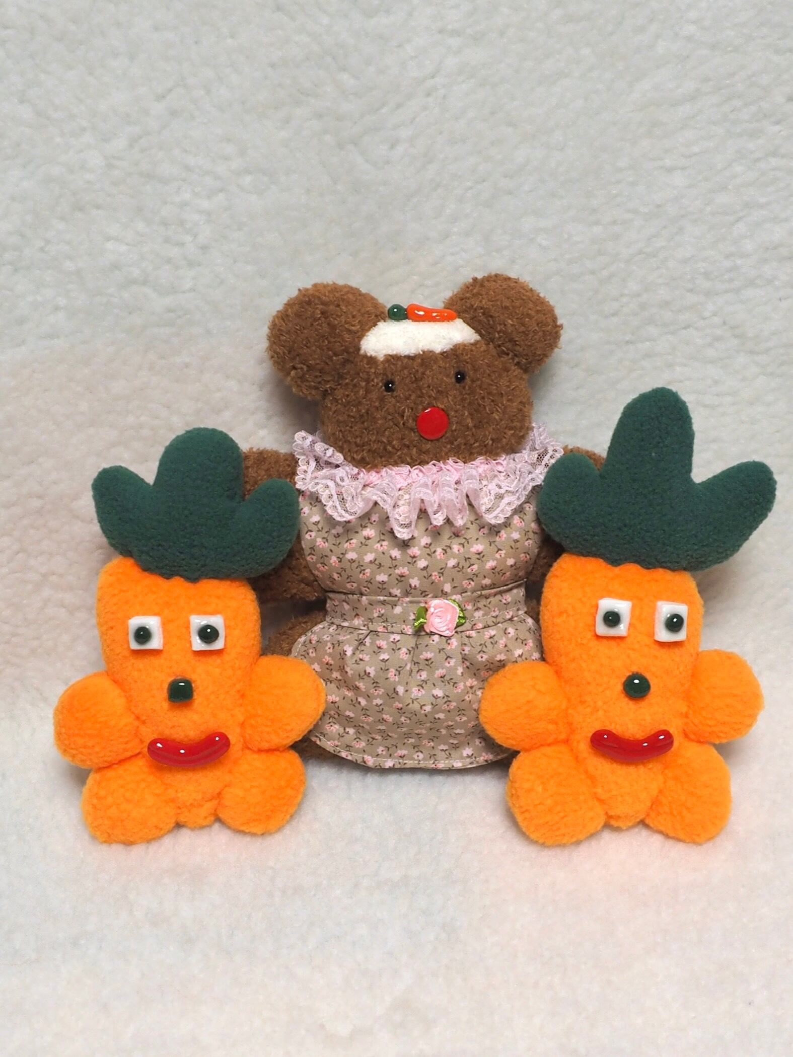 キャロットケーキのくまです(ᵔᴥᵔ)あたまにクリームとにんじんがのっているよ( ˘ᴥ˘)