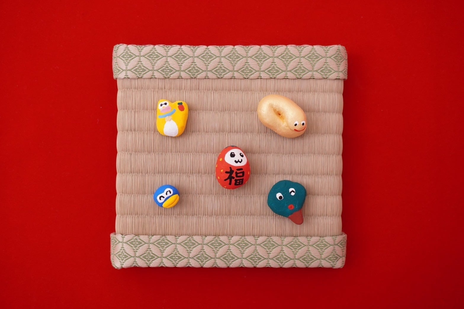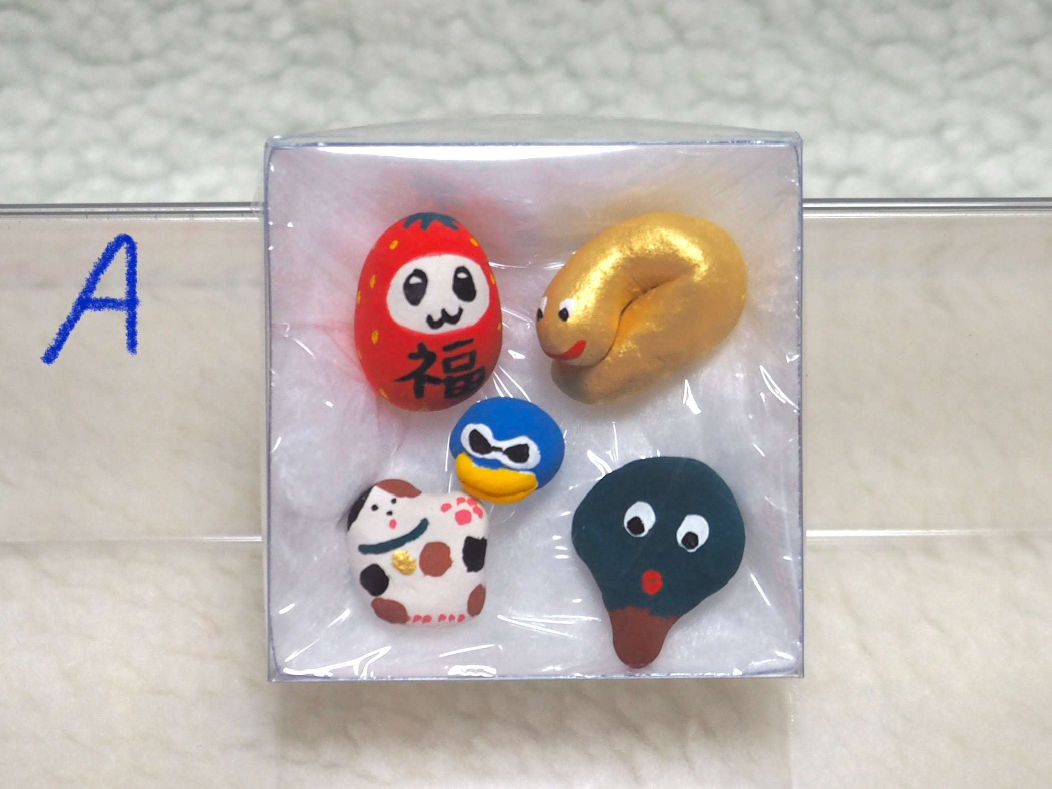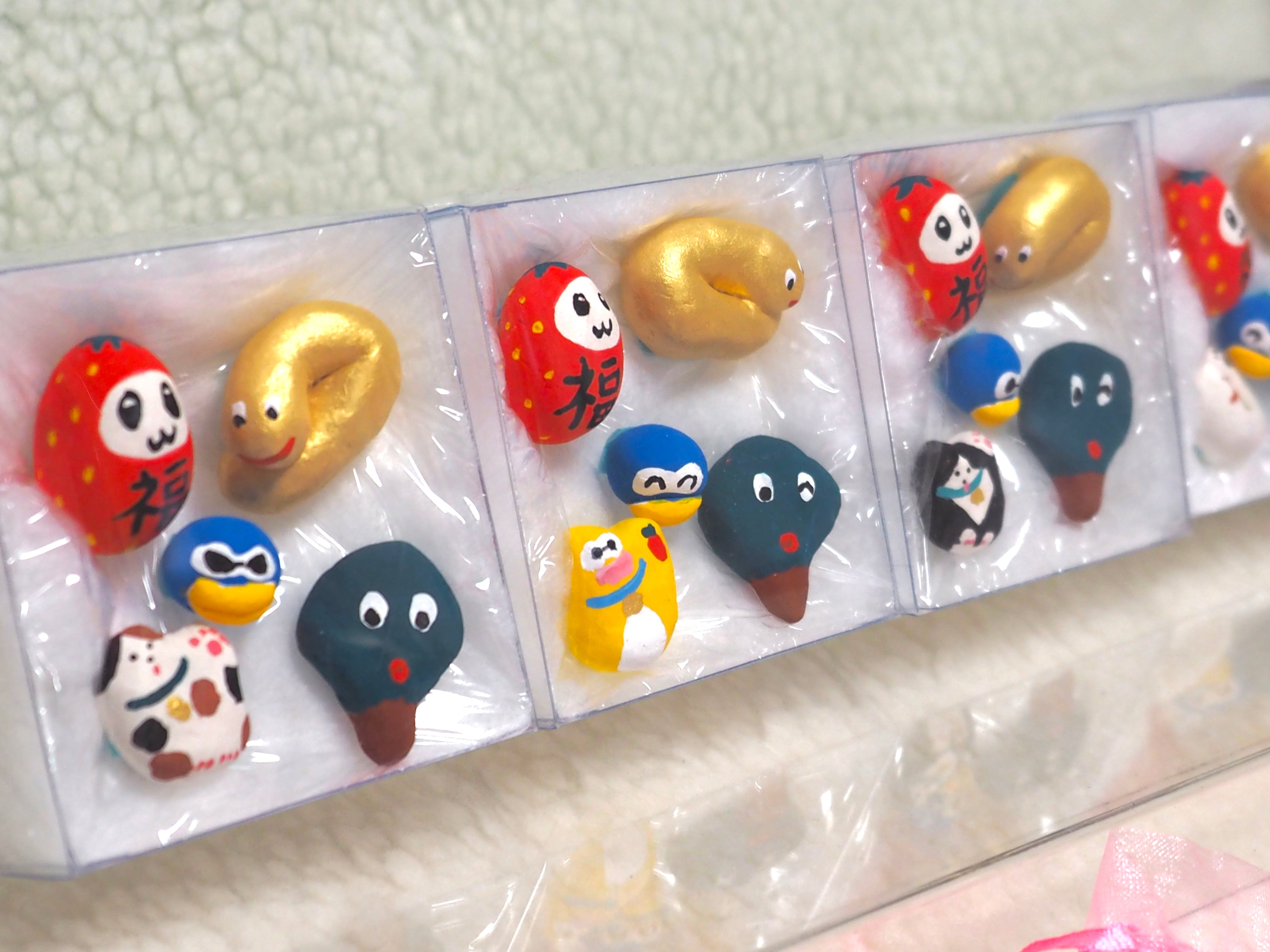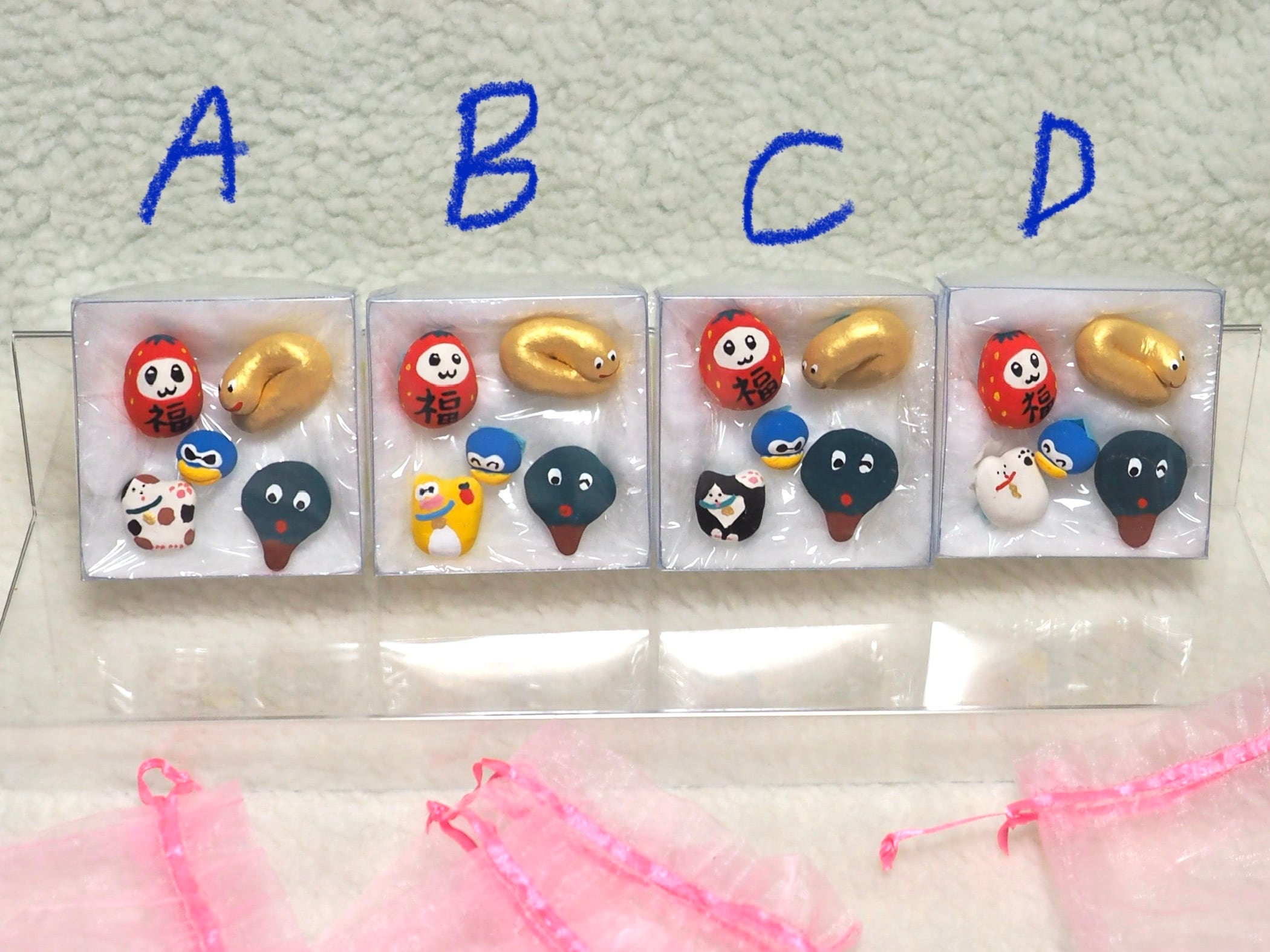小さな福招きズが入った福セットです。オーガンジー巾着に入ったまま玄関先などに飾るのもおすすめです。あなたのお家に福が来りますように(✭・.・✫)