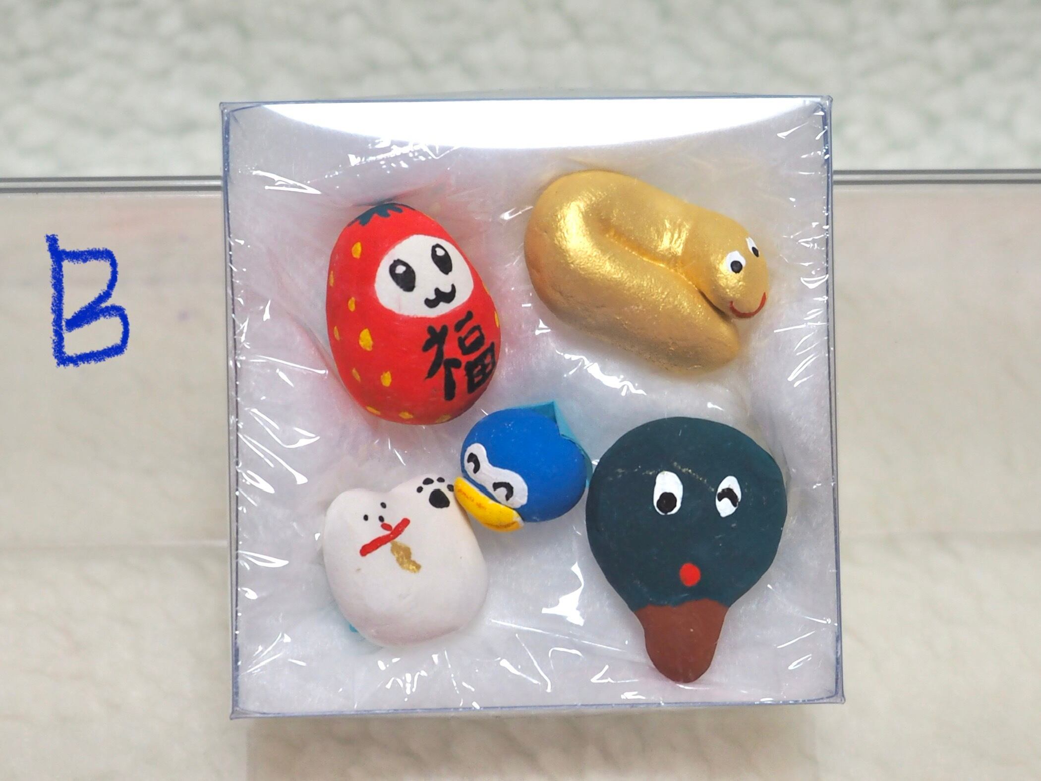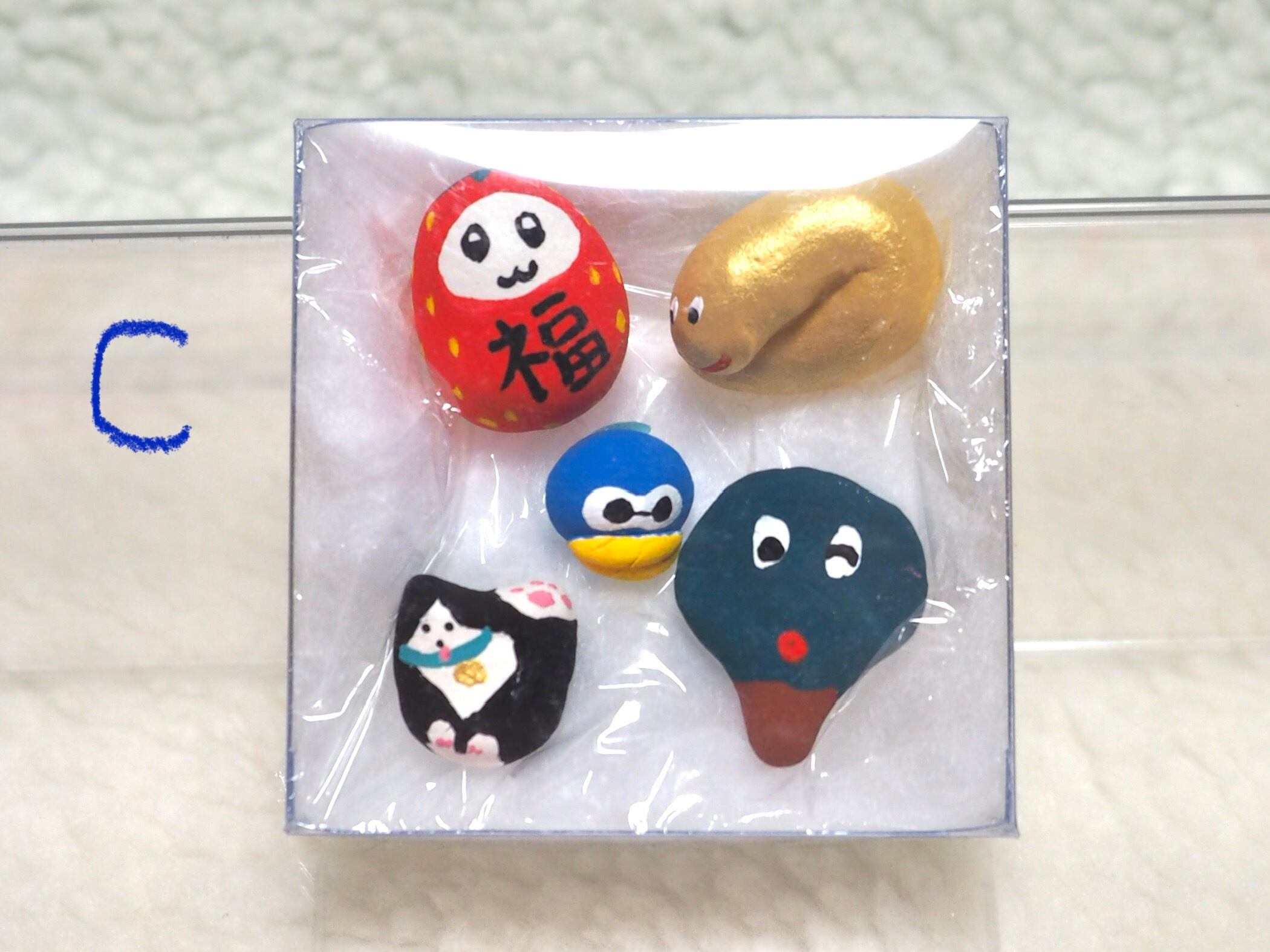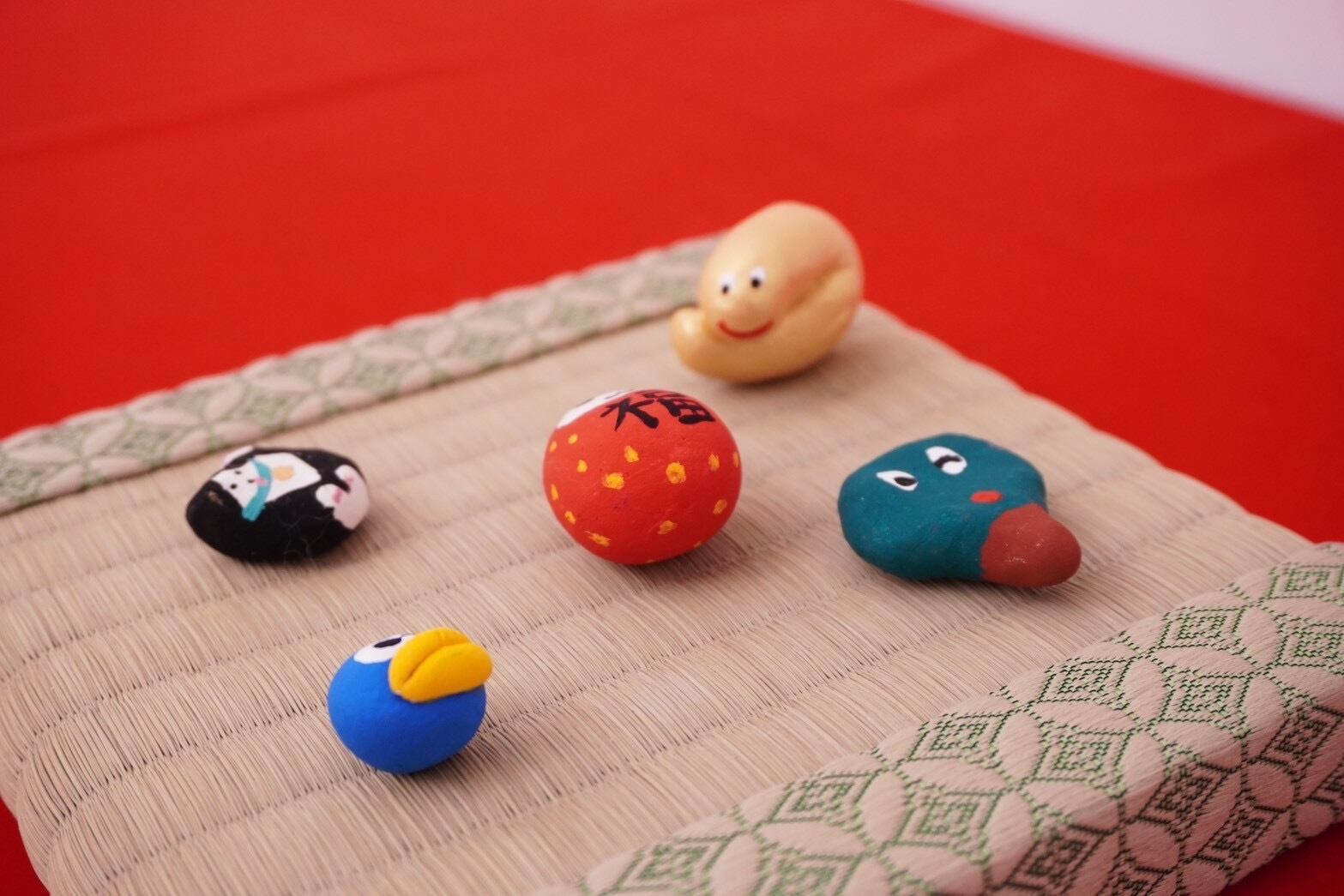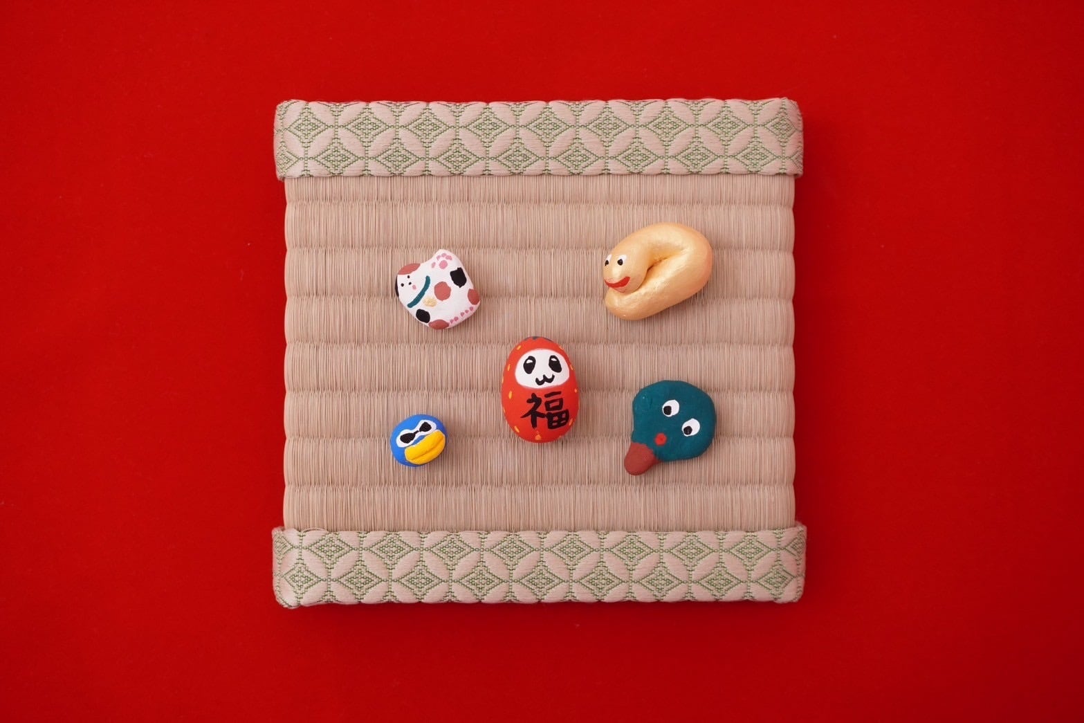 小さな福招きズが入った福セットです。オーガンジー巾着に入ったまま玄関先などに飾るのもおすすめです。あなたのお家に福が来りますように(✭・.・✫)